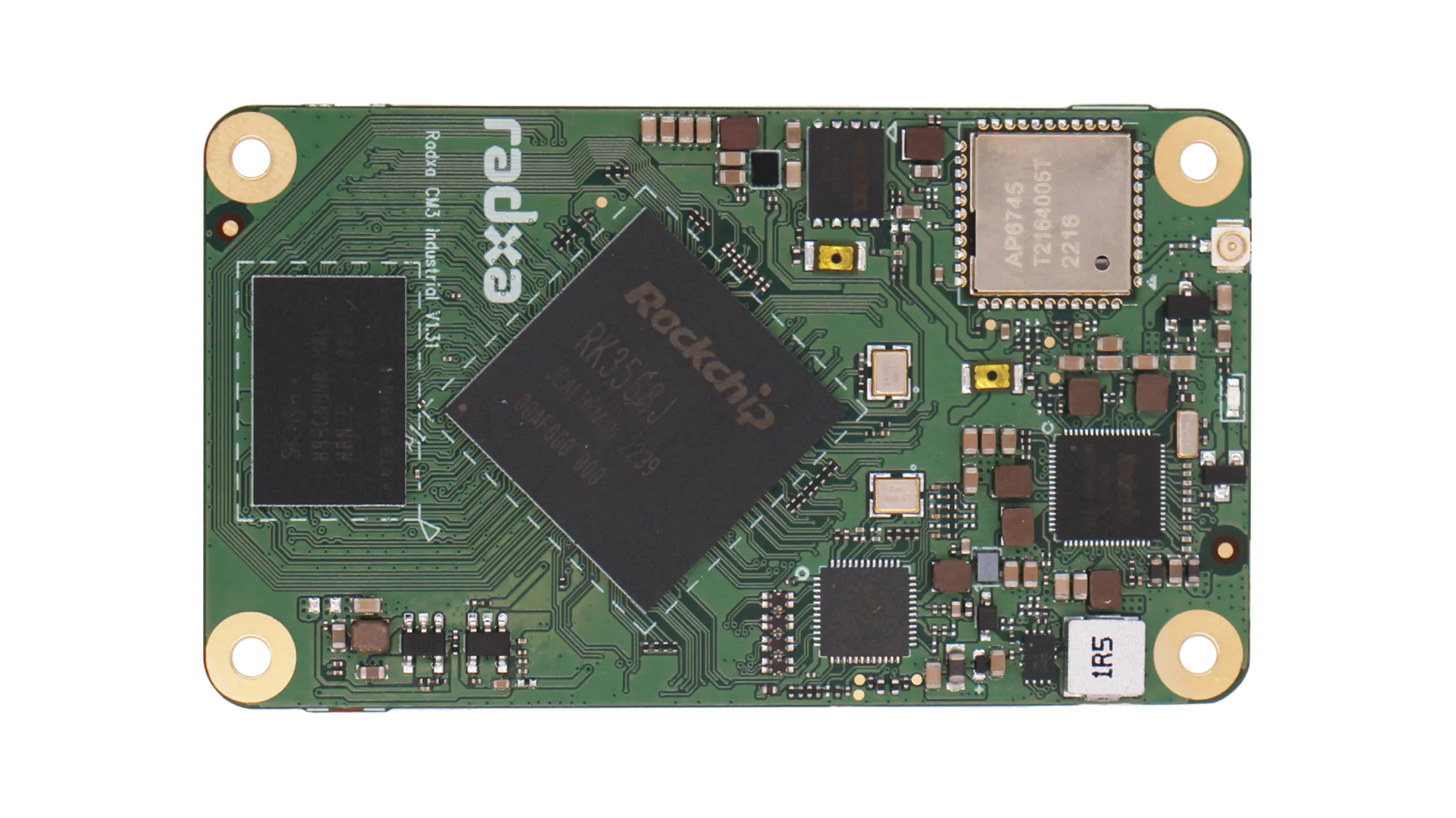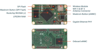 O Radxa CM3 I é um módulo de computação de alto desempenho alimentado pelo SoC Rockchip RK3568 (J), integrando magistralmente uma CPU, GPU, NPU, PMU, memória LPDDR4 e armazenamento eMMC em um formato compacto de 70 mm x 40 mm. Este módulo possui não apenas proezas computacionais excepcionais, mas também capacidades notáveis em renderização gráfica e cálculos de inteligência artificial.