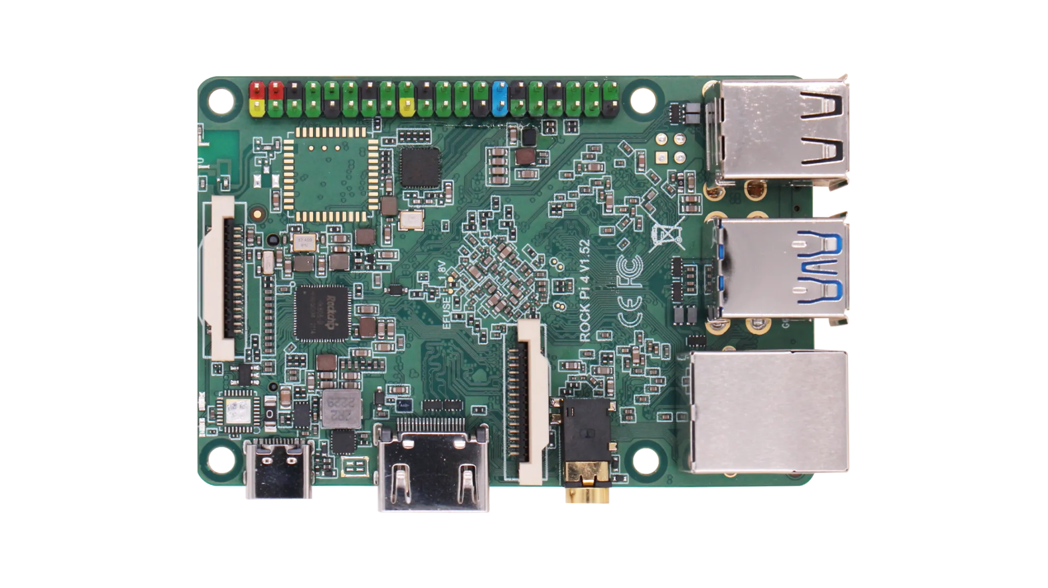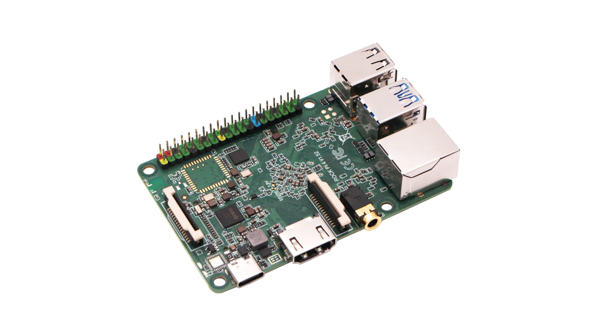 ROCK 4 combina os poderosos processadores Cortex-A72 dual-core e Cortex-A53 quad-core do RK3399, oferecendo excelente velocidade de processamento e capacidade gráfica. Este SBC de gama média é a escolha ideal para desenvolvedores e empresas inovadoras, lidando facilmente com sinalização digital, servidores de mídia pessoal ou projetos multimídia complexos.