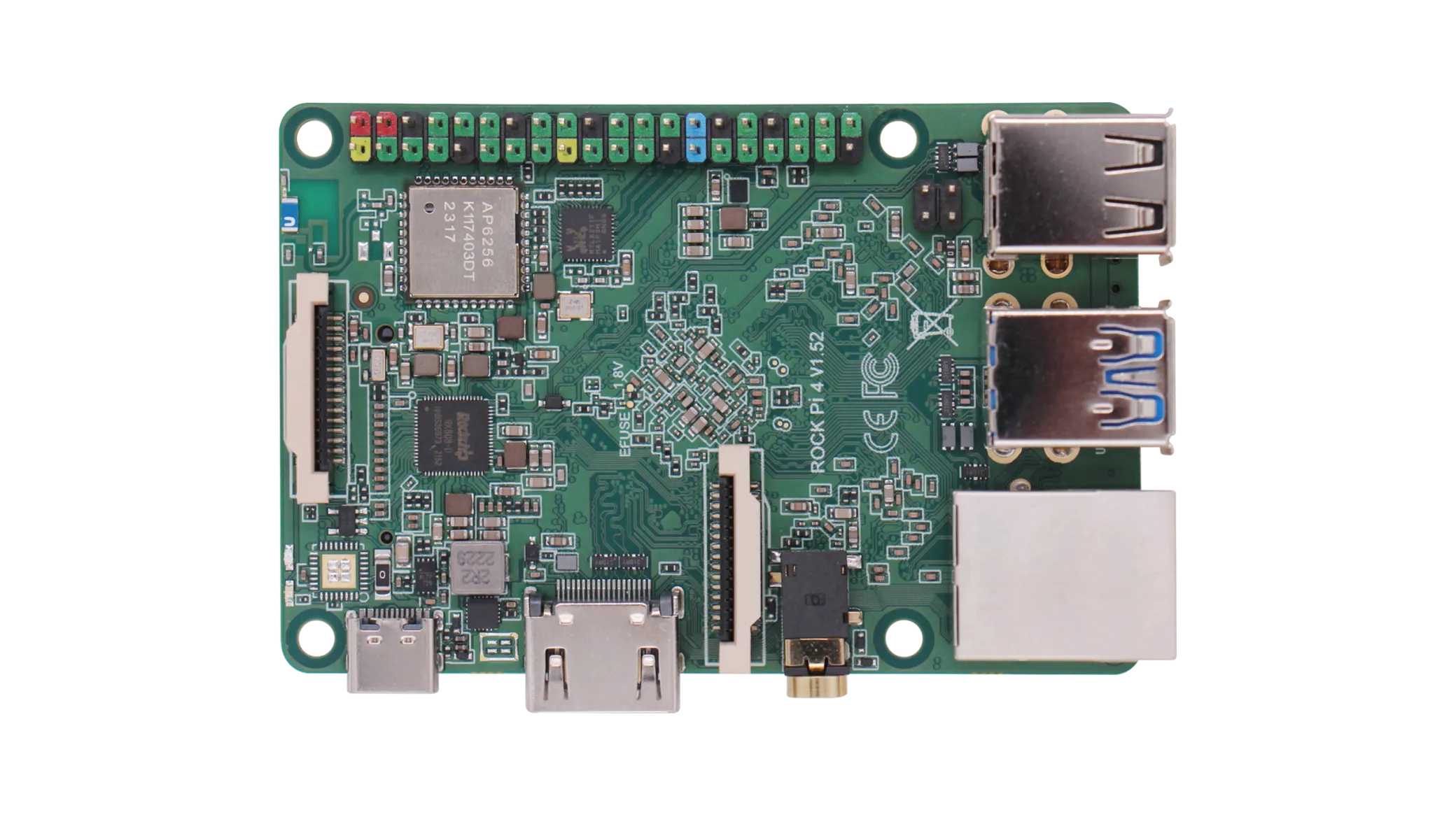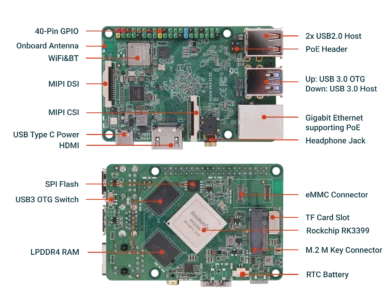 ROCK 4 combina os poderosos processadores Cortex-A72 dual-core e Cortex-A53 quad-core do RK3399, oferecendo excelente velocidade de processamento e capacidade gráfica. Este SBC de gama média é a escolha ideal para desenvolvedores e empresas inovadoras, lidando facilmente com sinalização digital, servidores de mídia pessoal ou projetos multimídia complexos.