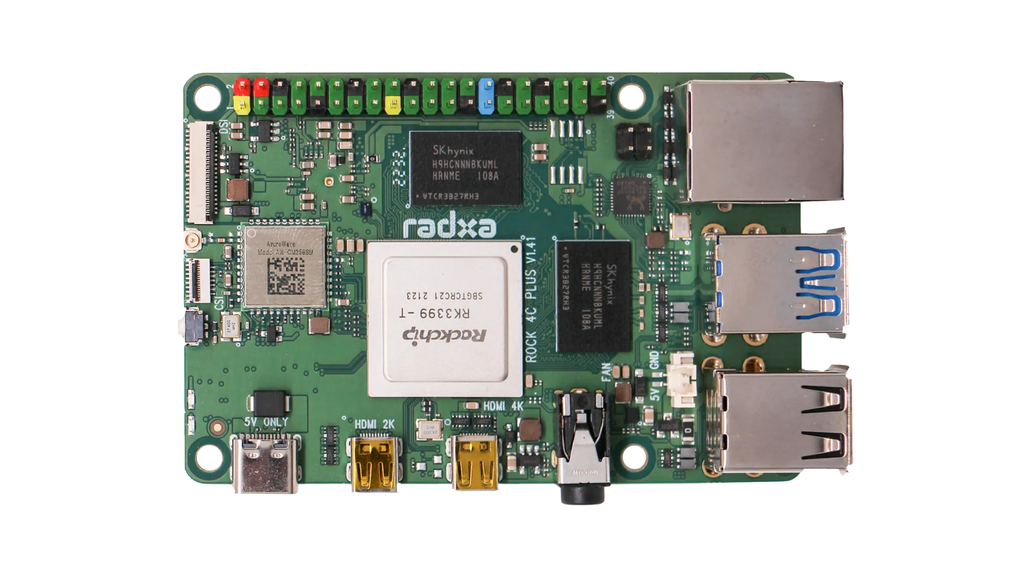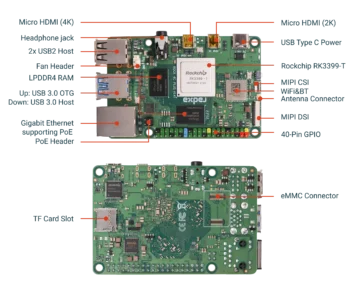 ROCK 4 combina os poderosos processadores Cortex-A72 dual-core e Cortex-A53 quad-core do RK3399, oferecendo excelente velocidade de processamento e capacidade gráfica. Este SBC de gama média é a escolha ideal para desenvolvedores e empresas inovadoras, lidando facilmente com sinalização digital, servidores de mídia pessoal ou projetos multimídia complexos.